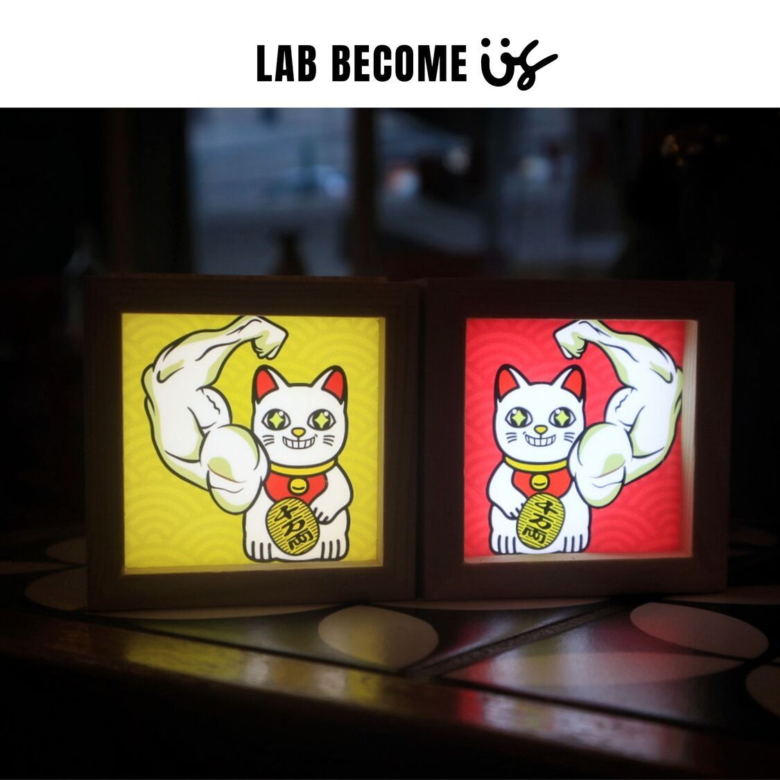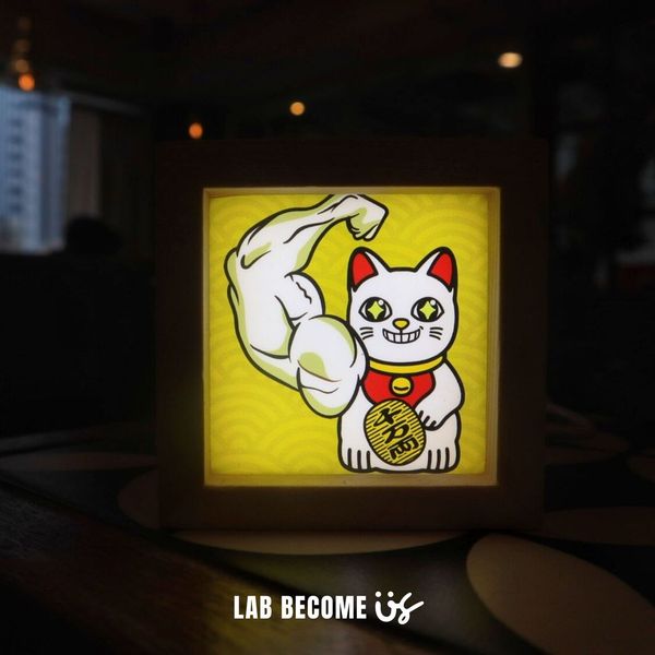 LAB BECOME US-木製燈箱︱ 大力招財貓 (黃色)
