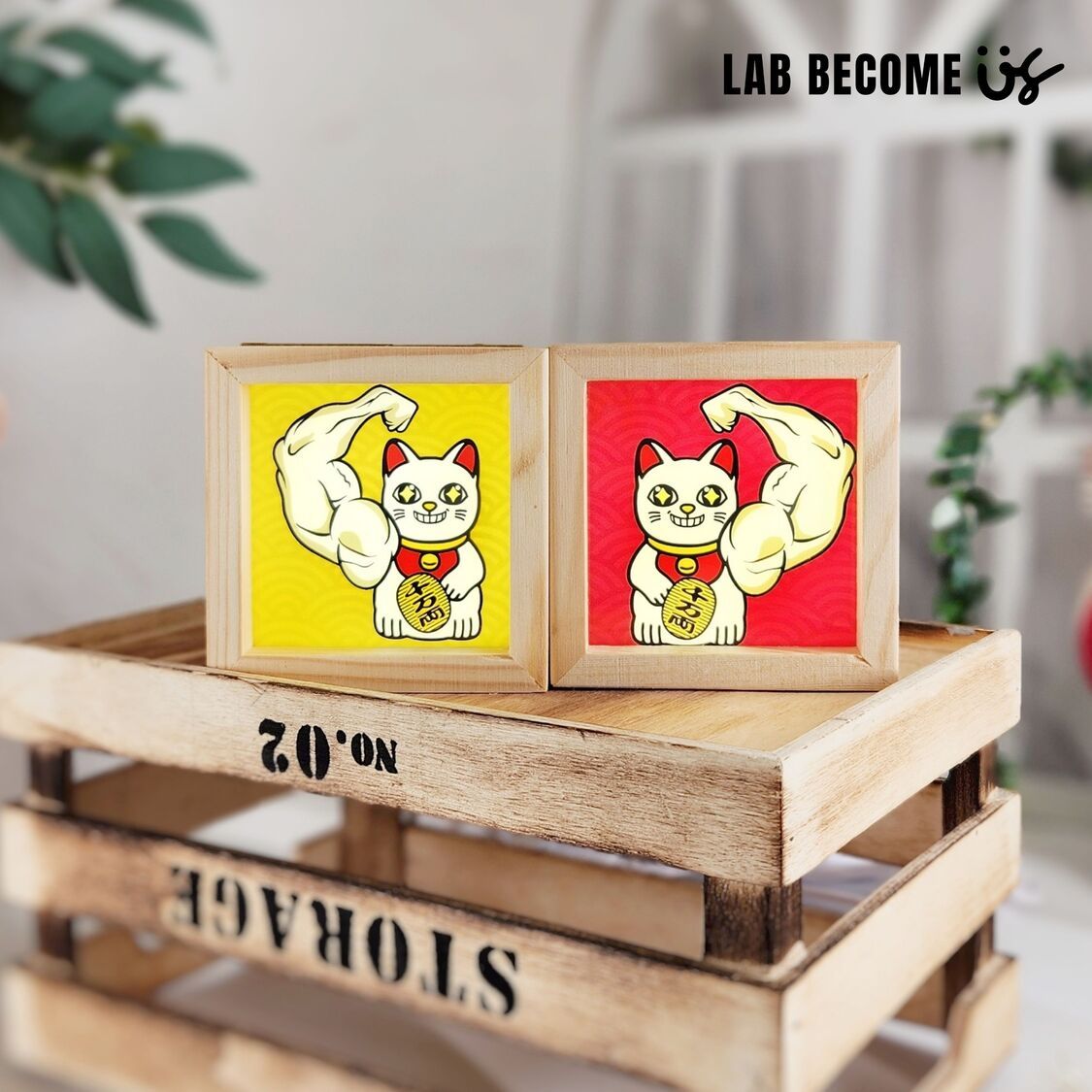 LAB BECOME US-木製燈箱︱ 大力招財貓 (紅色)
