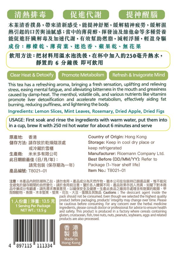 適用人士:一般人士、濕熱體質、精神疲倦、代謝緩慢、肢體浮重